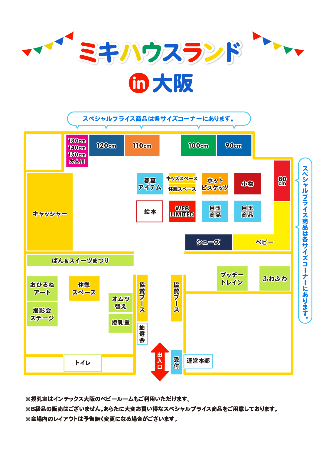 ※ミキハウスランド・ファミリーセールではお買い上げによる駐車料金の割引サービスはございません。