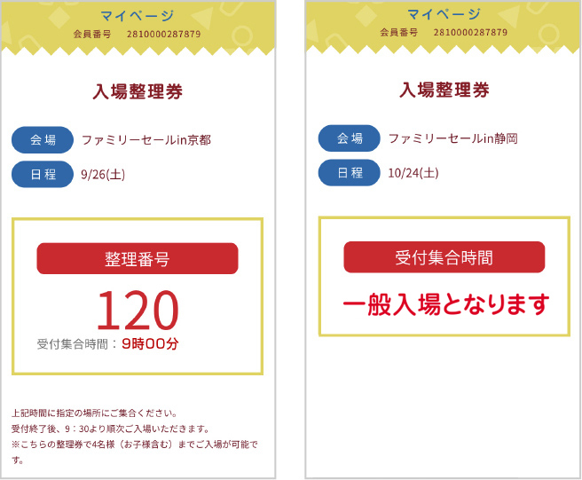 ※初日、2日目とそれぞれ別に抽選を行います。ご来場予定日をお間違いないようにご注意ください。
